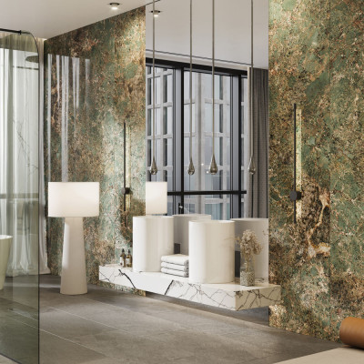Nasz największy format gresu - slab 120x240 cm. Jest to gres szkliwiony o powierzchni polerowanej na wysoki połysk, o rektyfikowanych krawędziach. Przeznaczony jest na ściany i podłogi. Nada wnętrzom apartamentowego charakteru, znakomicie sprawdzając się w salonach, łazienkach czy jako obudowa wyspy kuchennej. Płytka o grubości 6 mm spełnia wszelkie wymagania wytrzymałościowe przy zachowaniu fachowości montażu oraz zastosowaniu odpowiednich materiałów i narzędzi montażowych do płytek wielkoformatowych.